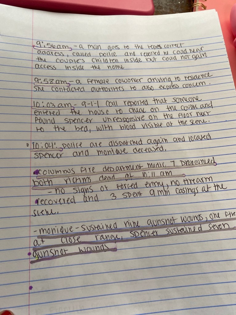 Later that morning, authorities entered the residence and found both Spencer and Monique deceased. Emergency responders pronounced both victims dead at the scene. Officials reported no signs of forced entry.